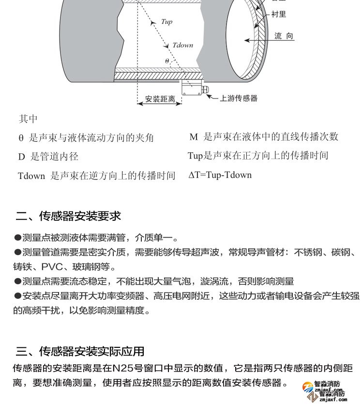 超聲波在流動(dòng)的流體中傳播時(shí)就載上流體流速的信息。因此通過接收到的超聲波就可以檢測出流體的流速,從而換算成流量,圖1。