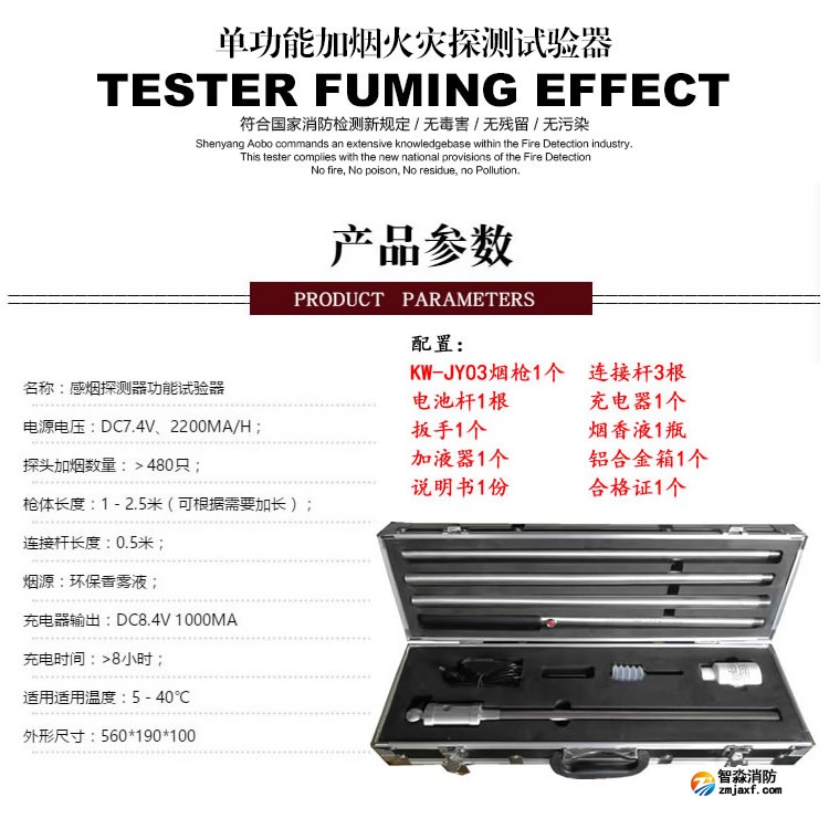 ZM-Y感煙探測器功能試驗器是4+2全功能火災探測器試驗器的子產品,利用物理學和化學原理控制和轉換技術,采用環保型霧香液通過電子能量轉換,將液體釋放哦顆粒煙霧,取代并淘汰了傳統的棒香發煙方式,發出的煙霧無明火、無煙灰、無煙油,對探頭無二次污染。以其結構緊湊,外形精美,攜帶方便,組裝簡單,操作靈活,槍體輕便,性價比高等受到廣大用戶的青睞。全結構為不銹鋼設計,鋁合金箱包裝,可對感煙類(各種型號的離子、光電及復合類煙感探測器)火災探測器進行維護、檢測、調試、驗收、靈敏度試驗。是浙江消防檢測、消防工程及使用火災報警系統的單位輔助工具。